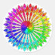Spoke-wheel in a spiralling rainbow colour pattern on a beige background.