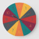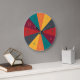 Fun and colourful custom wall clock for the kid in you with multicolored clock face and thin numerals. You can personalise this clock with custom text.
