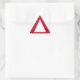 A red warning triangle sticker with a colourblind friendly design showing exclamation marks, compatible with our other colourblind friendly triangle alert range.