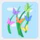 Stickers with my design of six butterflies of purple, green, blue, orange, pink and yellow on blades of grass under a blue sky with puffy white clouds.