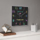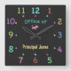 Customise a fun analogue chalkboard style clock with bright coloured numbers and dots and a cute cat for the office of a principal, counsellor, coach, paediatrician, nurse or parent! If you want different wording or a different animal, send a note and I'll create another clock style!
