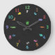 Analogue clock with bright coloured numbers cute little zoo animals will brighten up a nursery, school room or play room.