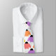 This necktie has a design of coneflowers scattered about the design in yellow, orange, pink, and purple on a field of white.
