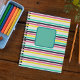 A modern, minimalist design. Striped in (blue, space cadet), (white, pink, purple, Cyclamen), (yellow, Aureolin), (white, green, seasalt) & turquoise. Five repeated horizontal bands of colour. Stylish and functional, perfect for your day to memorise what happened or future objects to achieve.