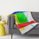 A quality printed throw has its advantages. This is a much finer weave throw than its loopier cousins, and though lighter, it is worth the investment for custom room accessorizing. The back is much prettier than the typical brown, and the fringe on the long sides very vivid, the selvage nicely done. Before photographing, I washed the throw in cold water, delicate, with a thicker woven throw the same size. On tumble dry low, this throw was dry in half the time as the other. This is a very practical quality if you use throws for furniture covers or to wrap up in frequently. The sleekness of the fabric makes it a great layer for accenting or protecting without the feeling of sitting on too much stuff. Perfect for napping or when you feel a light chill coming on. The color printing is beautiful and on this fabric, matched the design and color of my Photoshop image. This is an advantage for blending room fabrics and colors. The fringe on the short sides prints the colors from the design image and therefore varies from the side fringe. I streaked a white fractal line through the plaid pattern to give the illusion of weaving. This printed as crisp as an illusory thread, and put some white in the short side fringe, showing another advantage of print vs loomed- for artistic purposes, line lines, detail, and color integrity can be planned and preserved. My loomed throws have color limitations and more of a needlepoint texture. Print throws reproduce an exact image. The throw felt a little stiff straight out of the package, but this went away in the first delicate wash. Of course I searched the wash water for ink or bleeding and there was none.