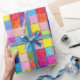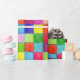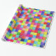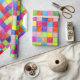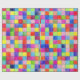 Squares of graph paper coloured in by hand with coloured pencils in random colours. No two adjacent squares have the same exact colour. Graph paper squares outlines are made up of light blue lines.