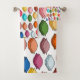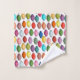This towel set has a mid-century modern design of sets of three leaves in fading shades of retro colours.