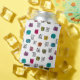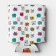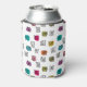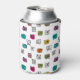 This can cooler has a mid-century modern design of scattered mazes, some with coloured blobs under them.