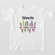 This is a fun T-shirt for a boy going to Kindergarten. Your little boy will simply love wearing this colourful T-shirt on his first day of Kindergarten. To make the T-shirt even more special, it can be personalised with your boy's name on the front. The design consists of seven coloured pencils at different angles next to each other and the word "Kindergarten" with each letter in different colours, across the middle of the pencils.