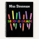 Start out the new school year with this Second Grade notebook which can both be used by teachers and students. The design consists of 7 different coloured pencils at different angles next to each other with the word "Second Grade" across them. This note book can be personalised by changing the name on it, and would make a great back-to-school gift.