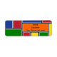 These return address labels have a Bauhaus design of rectangles formed with grey lines and filled with red, yellow, orange, blue, and green on a field of black.
