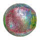 Stamped with coloured and scratched spots where a shade of green and a some small parts of yellow can cause a slight notion of gold or metal making the image very strange, the scratches give an aged and spoiled tone, a very 'spoiled' rustic.