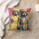 Colourful 1960's mod raccoons cushion