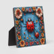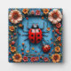 Colourful ladybugs that are sitting on a blue surface with flowers