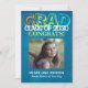 Trendy retro style blue burnt orange yellow colourful 8th grade middle school announcement card with custom photos collage. ++++++++++++ Personalise it with the graduate name, graduation year, school name, 5 photos and your text on both sides!