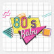 80's Baby Stickers features a bright colourful typography of "80's Baby''. These designs include elements of bright coloured blue, orange, and pink, yellow, purple, a geometric grid, shapes, and graphics all inspired by the 80's.