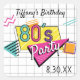 80's Party Stickers features a bright colourful typography of "80's Party''. These designs include elements of bright coloured blue, orange, and pink, yellow, purple, a geometric grid, shapes, and graphics all inspired by the 80's. Includes a template to personally customise with event and date.