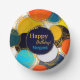 Colourful 80's Retro Circle Abstract Happy Birthda Paper Plate