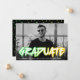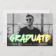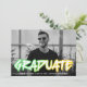 Trendy graduation announcement featuring the graduate's horizontal photo with "Graduate" displayed in colourful 90's-style lettering. Personalise the front of the bold graduation announcements by adding the graduate's name, school, and graduation year. The back of the announcement features a gradient confetti pattern in neon green and yellow.