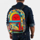 Colourful backpack featuring an abstract cubism style design and your custom photo (optional). Beautiful for school or every day use.