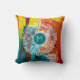 Add your own initial to this colourful pillow. A white floral mandala is overlaid on a yellow, orange, and turquoise blue abstract painting, and your personal monogram is placed in the centre.
