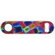 Bright and colourful bold abstract pattern of neon bokeh blocks on personalised bottle opener.