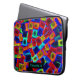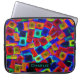 Bright and colourful bold abstract pattern of neon bokeh blocks on personalised laptop sleeve.