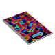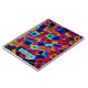 Bright and colourful bold abstract pattern of neon bokeh blocks on personalised notebook.