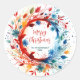 Colourful Abstract Botanical Christmas Wreath Classic Round Sticker