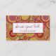 This business card features a sophisticated palette of reds, golds, greens, blues, and orange... even some pops of deep pink. Front-and-centre you're given a white rectangular badge with a red border for adding your name and title, also included on the back with your contact details. Circles are nested and stripes are different widths. The grunge texture adds depth and the abstract quality of this design makes it perfect for people in creative fields. The colourful background art design can be moved around, rotated or resized if you'd like to have a bit of control over the ultimate look of these cards. Likewise, change your font and text colours as you see fit.