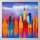 The colourful abstract city painting is a modern artwork that represents an urban landscape in a non-representational way. The painting invites the viewer to explore the interplay between the different elements, and to appreciate the beauty that can be found in the chaotic nature of the city.
