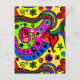 Colourful Abstract Doodle Art Hearts and Flowers Postcard