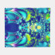 Abstract fractal art in bold and vibrant colours: blue, cyan, green, and purple.