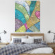 This dynamic abstract design features bold black linework creating geometric shapes filled with watercolor textures. Shades of teal, green, purple, yellow, pink, and brown flow together in curved and angular sections, forming a striking mosaic of colour and movement. The layered lines give the composition rhythm and depth, while the watercolor tones add softness and texture. A vibrant and modern design full of energy and balance.