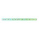 This roll of ribbon is has colourful abstract lizards who are green, yellow, orange and blue holding green leaves along with festive balloons in matching colours on a green and blue background.