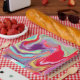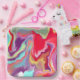 Red, purple, blue, green, yellow modern abstract marble pour painting style digital art. Cute for birthday or any celebratory occasion.
