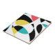 Abstract, colourful, cheerful pattern made with circular geometric shapes. Modern, playful, trendy and fun graphic art in red, yellow, blue and black colours.