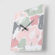 Colourful Abstract Pastel Paint Blotches Square Wall Clock