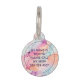 I love this tag - it has a cute funky design and matches my dog's purple collar. It also came with a rubber band to put around it - I originally thought it was just to protect the tag, but it actually glows in the dark too! Which I think is very cool. especially if you're walking your dog in the dark. The printing is awesome. Very clear, with lots of space for the details I wanted on the tag