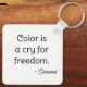 From the painting Carnaval, this vibrant keychain features an abstract multicolored face in pixel art. The quote on the back, "Colour is a cry for freedom.", celebrates bold self-expression and artistic freedom. A bright statement piece to carry with you.