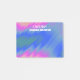 These custom post-it notes feature a colourful pastel abstract design that has hues of pink, blue, orange, and green. At the top of the pad, there is the personalised text which you can customise with your information.