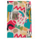 Colourful shapes and swirly lines grunge pattern with a white background.