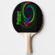 Cool ping pong paddle done in black with a colourful abstract snake. Poison in neon green text, at the top, is ready to personalise to read what you want.