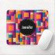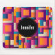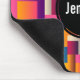 A mouse pad with a colourful abstract background. Bold and exciting colours - pink, blue, orange and more.