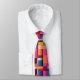 A tie with a colourful abstract background. Bold and exciting colours - pink, blue, orange and more.