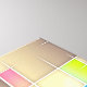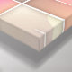 An abstract illustration with large and small squares and rectangles with intersecting lines. This creative design has contrasting pastels and brights in the colours of cream, rose pink, lime green, light brown and bright blue.