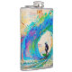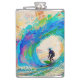 Colourful Abstract Surfer in The Barrel Wave Hip Flask