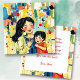 Colourful abstract sentimental Happy Mother's Day watercolor card. Pretty abstract illustration of an Asian mum and child.