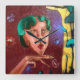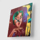 Colourful Abstract Woman Portrait – Oil Painting Square Wall Clock