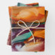 These Colourful Abstract Wrapping Paper Sheets feature a southwestern landscape of vibrant oranges, greens, pinks and purples. It's a hand painted, original design that transfers beautifully onto the wrapping paper.